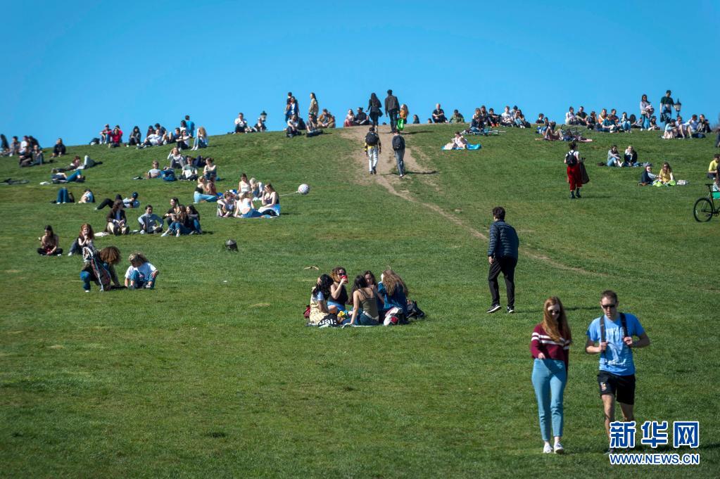 3月29日,人們在英國倫敦的報(bào)春花山享受陽光。