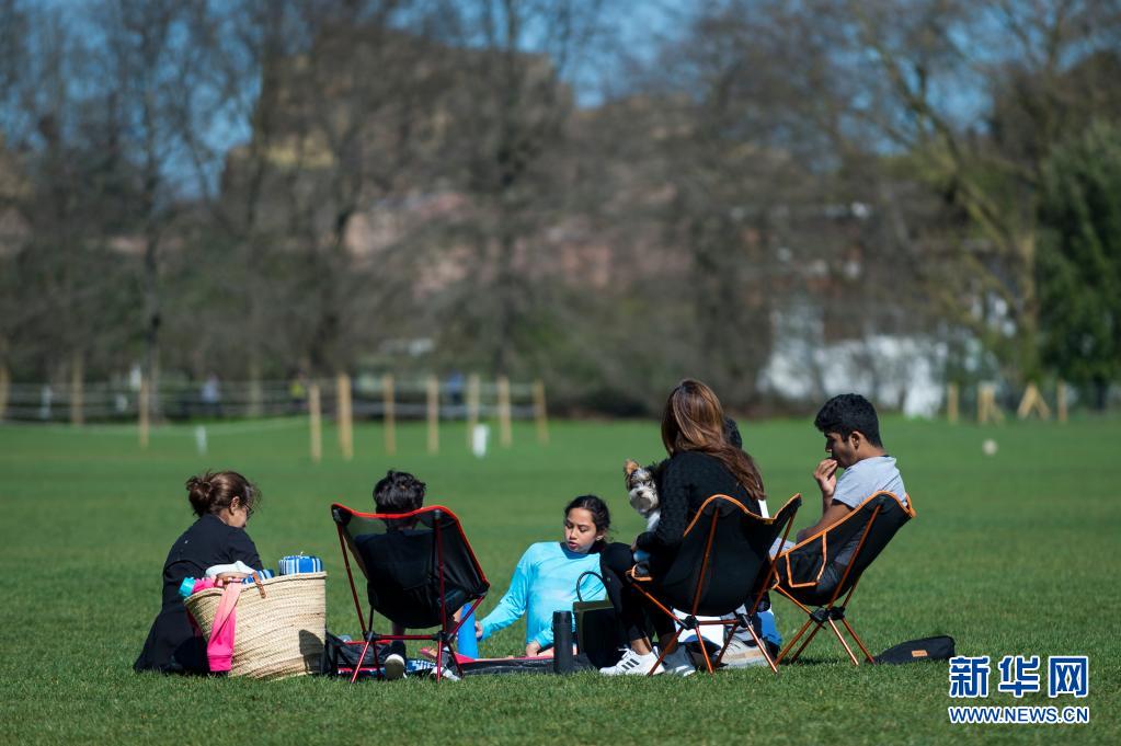 3月29日,人們?cè)谟?guó)倫敦?cái)z政公園的草地上野餐。