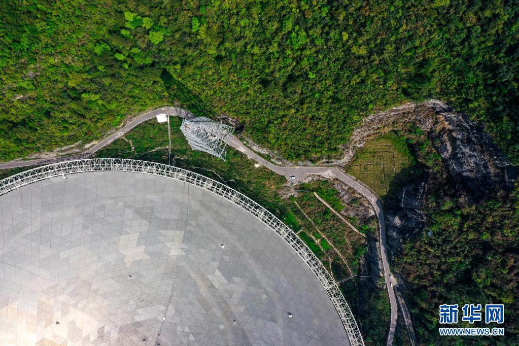 在貴州省平塘縣,被譽為“中國天眼”的500米口徑球面射電望遠鏡(FAST)在群山中仰望星空,探求著宇宙奧秘。