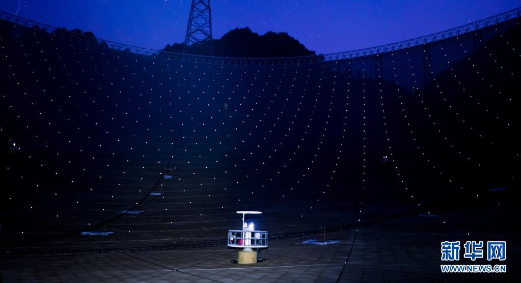 在貴州省平塘縣,被譽為“中國天眼”的500米口徑球面射電望遠鏡(FAST)在群山中仰望星空,探求著宇宙奧秘。