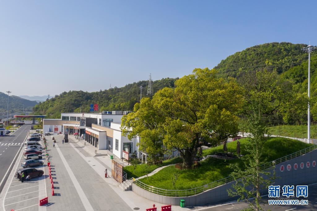 杭州第二繞城高速西復(fù)線次塢服務(wù)區(qū)有3棵樹(shù)齡在100年以上的古樹(shù)。服務(wù)區(qū)在建設(shè)過(guò)程中,將古樹(shù)保護(hù)起來(lái),現(xiàn)已成為一道特色景觀。新華社發(fā)(郭斌 攝)