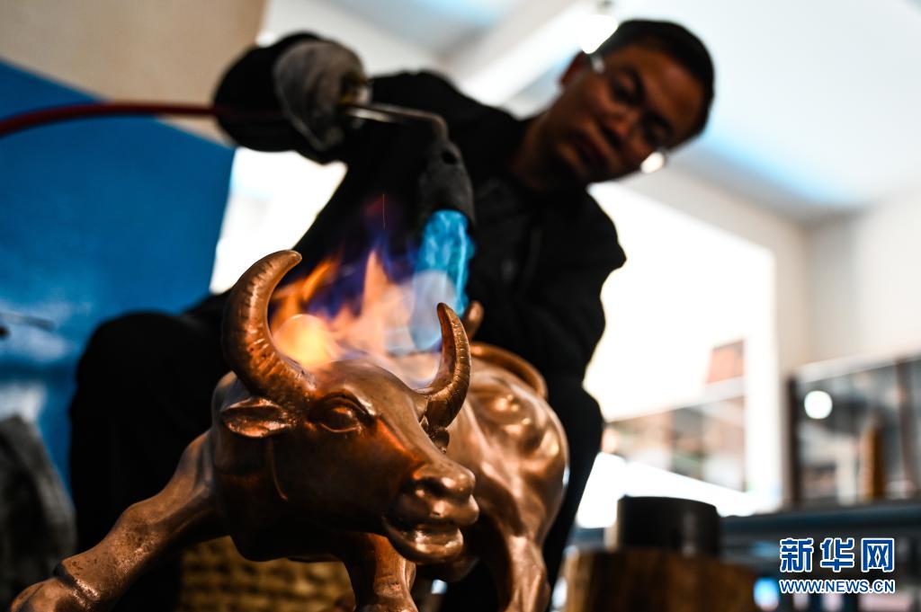 地處滇東北、烏蒙山腹地的云南會澤縣流傳著具有300多年歷史的斑銅制作工藝。斑銅工藝復雜,要采用高品位的銅為原料,經(jīng)過20余道工序制作而成。產(chǎn)品“妙在有斑,貴在渾厚”,風格獨樹一幟。33歲的張偉是會澤“張氏斑銅”的第十三代傳人。自幼深受地域文化和家庭熏陶的他,大學畢業(yè)后,返鄉(xiāng)從事斑銅制作工作。在會澤古城的“銅匠街”,張偉創(chuàng)辦了斑銅傳習館,不斷研發(fā)斑銅新產(chǎn)品、傳承著這項非遺技藝?!鞍咩~是一種情感、一種文化,希望在我們這代人的努力下能夠更好地將它傳承下去,讓更多人了解斑銅的獨特魅力。”張偉說。
