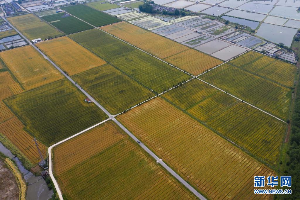 初夏時(shí)節(jié),浙江省湖州市吳興區(qū)東林鎮(zhèn)萬畝田野里的金黃的小麥、綠色的桑葉、彩色的花海還有白鷺等野生鳥類等構(gòu)成了一幅五彩田園的美麗景色。