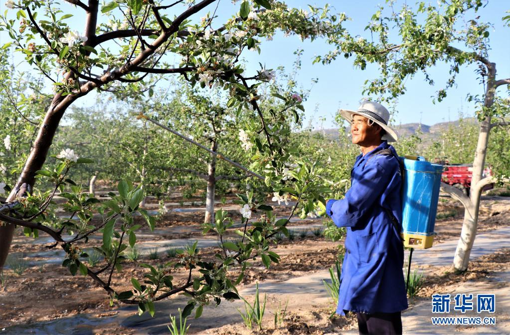 日前,隨著氣溫回升,甘肅省平?jīng)鍪徐o寧縣的百萬畝蘋果花相繼盛開,果農在果園里疏花、噴藥,田間地頭一派繁忙景象。