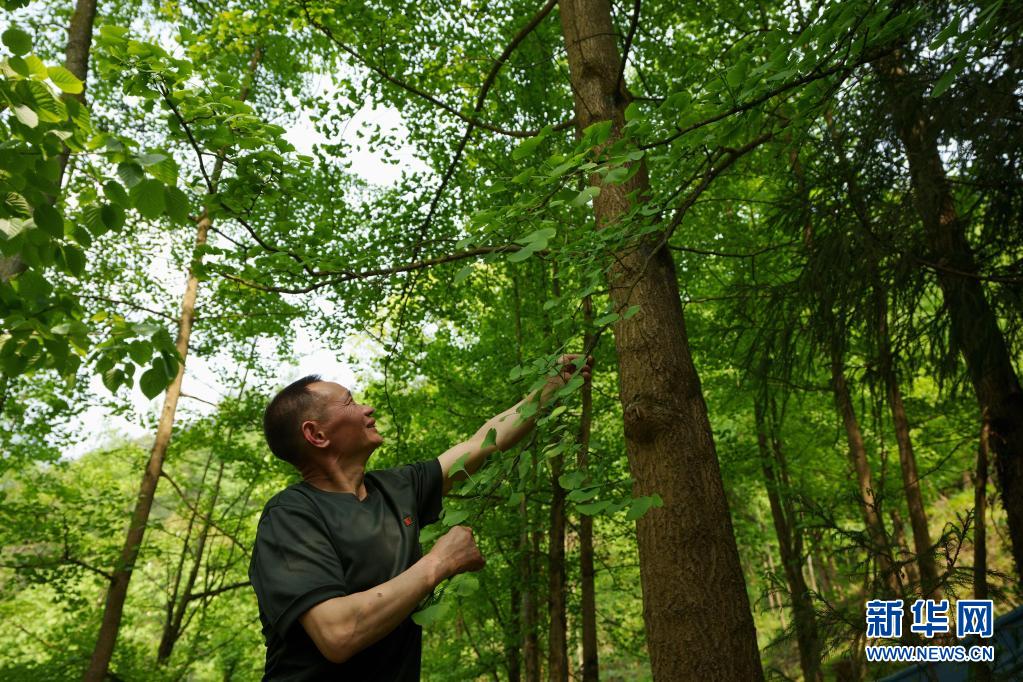 5月4日,林興聰在自家林地里看著茁壯成長的銀杏樹。 新華社記者 江宏景 攝