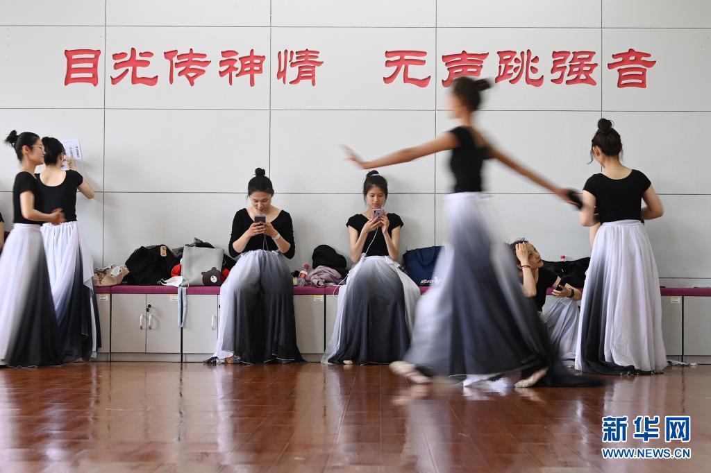 天津理工大學(xué)聾人工學(xué)院的舞蹈隊員們在學(xué)院的排練廳里休息(5月8日攝)。新華社記者 李然 攝