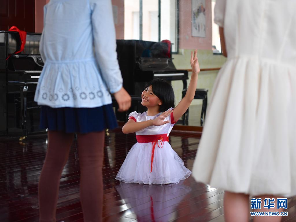 2017年5月17日,蔣張子怡在學(xué)校的舞蹈房內(nèi)給舞伴們講解舞蹈的分解動(dòng)作。
