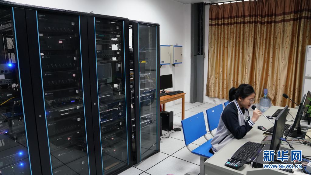 2021年5月11日,蔣張子怡在學校的廣播站進行播音。