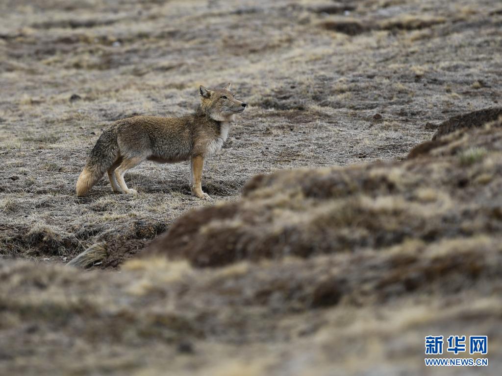 5月25日,一只藏狐在三江源國(guó)家公園黃河源園區(qū)內(nèi)活動(dòng)。