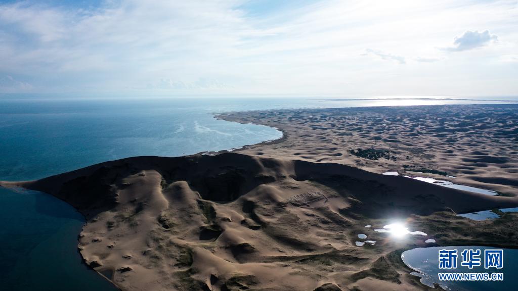 這是2020年7月28日拍攝的青海湖沙島一隅(無人機(jī)照片)。