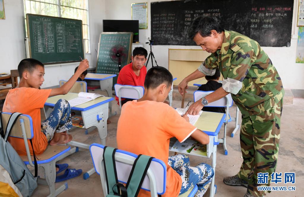 在廣西上思縣那琴鄉(xiāng)中心小學(xué)逢通村教學(xué)點,梁志雄老師在輔導(dǎo)學(xué)生(6月16日攝)。新華社記者 陸波岸 攝