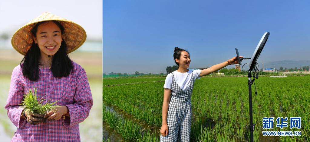 拼版照片:左圖為程玉嬌在太原市晉源區(qū)三家村水稻田里;右圖為程玉嬌在水稻田里進(jìn)行直播(7月9日攝)。今年24歲的程玉嬌2019年留學(xué)回國后,選擇了返鄉(xiāng)創(chuàng)業(yè)發(fā)展稻魚菜綜合種養(yǎng)農(nóng)業(yè)。晉源區(qū)三家村出產(chǎn)的大米遠(yuǎn)近聞名,程玉嬌在社交平臺上開通了雙語直播,在科普水稻知識的同時(shí)拓展銷售渠道,不僅生意做得風(fēng)風(fēng)火火,自己也變成了小有名氣的“網(wǎng)紅”。