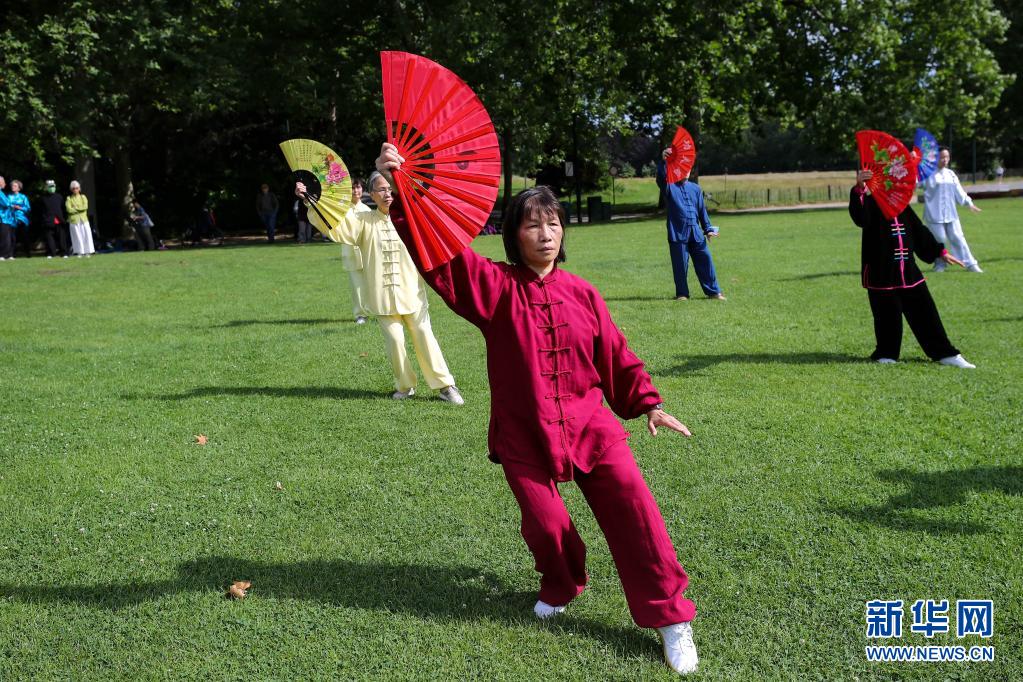 7月28日,人們在比利時(shí)布魯塞爾的拉肯公園練習(xí)太極。