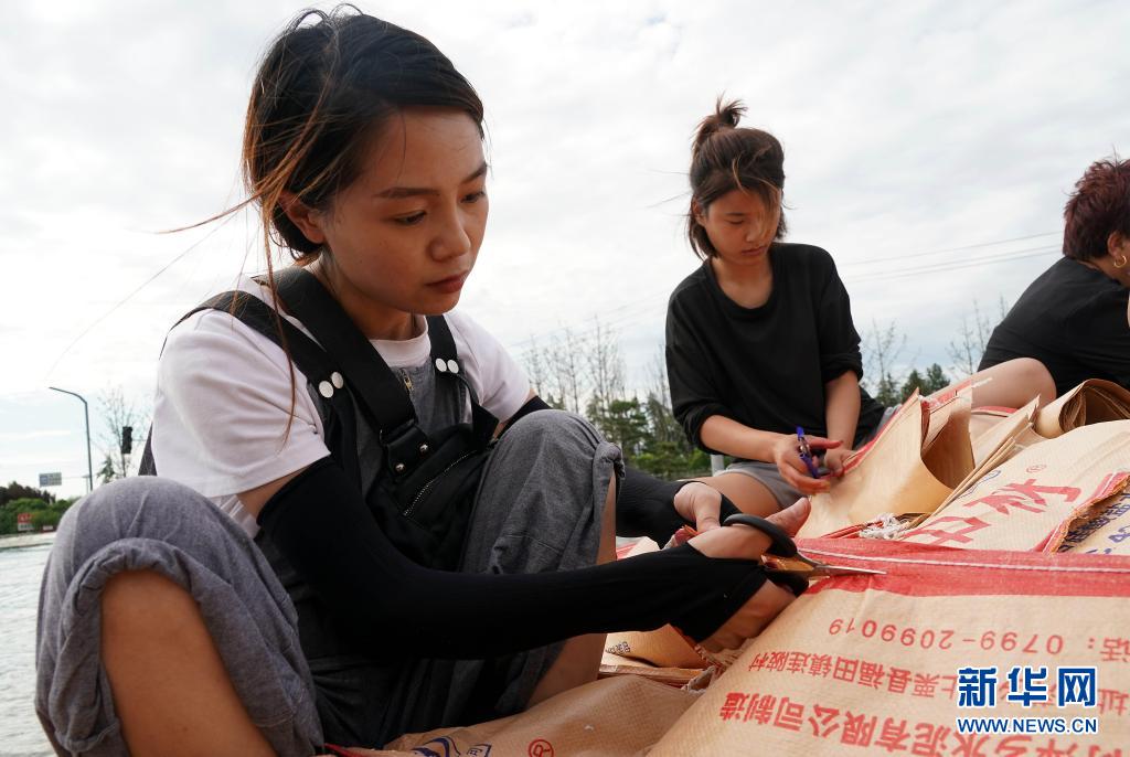 當(dāng)日,在河南省鶴壁市??h傅莊堤上,不少群眾自發(fā)前來和救援人員一起裝沙袋、運(yùn)沙袋,共筑堤壩。受持續(xù)強(qiáng)降雨影響,??h防汛形勢嚴(yán)峻,傅莊堤主要為??h縣城及26個村莊提供保護(hù)。新華社記者 李安 攝