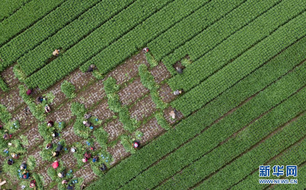 8月13日,在四川省阿壩藏族羌族自治州紅原縣刷經(jīng)寺鎮(zhèn)加當(dāng)村,當(dāng)?shù)厝罕娫谑崭罡咴n筍(無(wú)人機(jī)照片)。