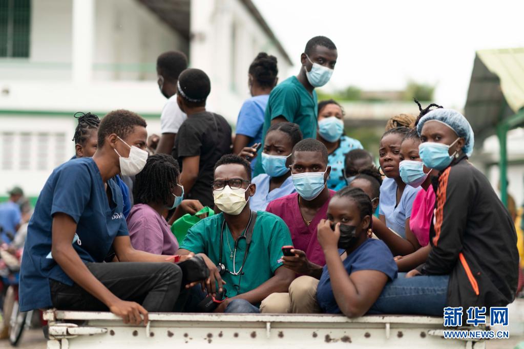 8月17日,人們在海地萊凱乘坐汽車轉(zhuǎn)移。