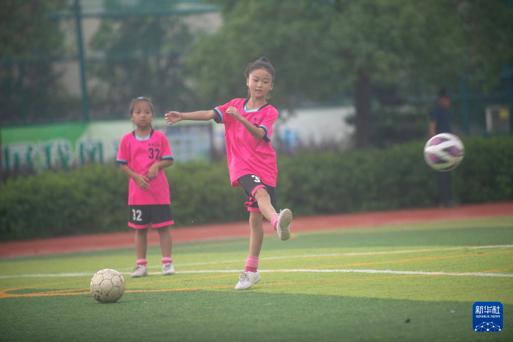 7月13日,浙江省余姚市肖东第二小学学生在足球夏令营进行足球训练。