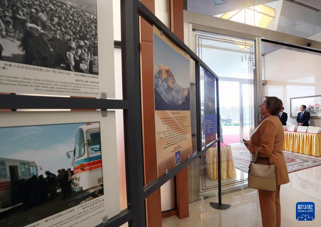 西藏自治区成立60周年发展成就图片展29日在中国驻白俄罗斯大使馆举行。白俄罗斯政界、军界、学者、媒体代表等300余人观看展览。