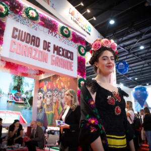 这是9月29日在阿根廷首都布宜诺斯艾利斯举行的拉美国际旅游博览会上拍摄的墨西哥展台。