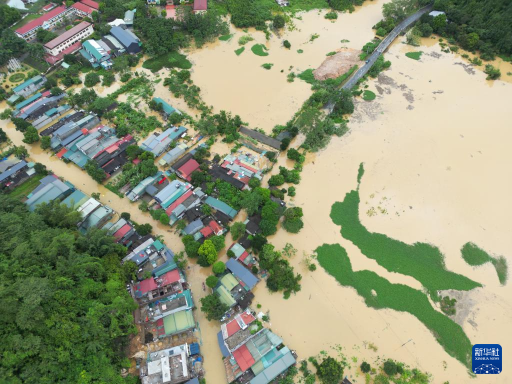 9月30日,在越南老街省,多栋民宅被淹(无人机照片)。