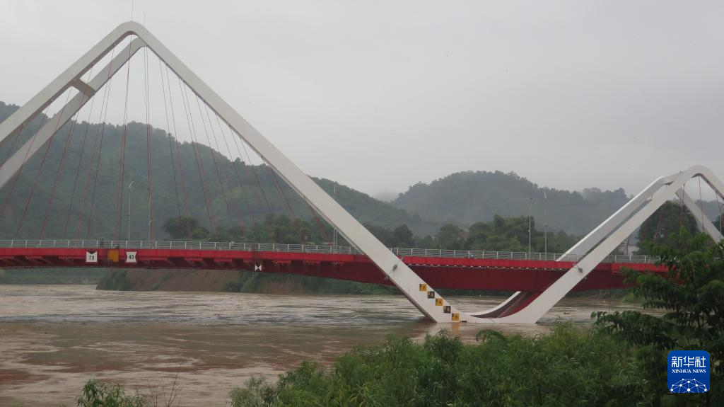 9月30日,在越南老街省,红河水位上涨接近桥面。