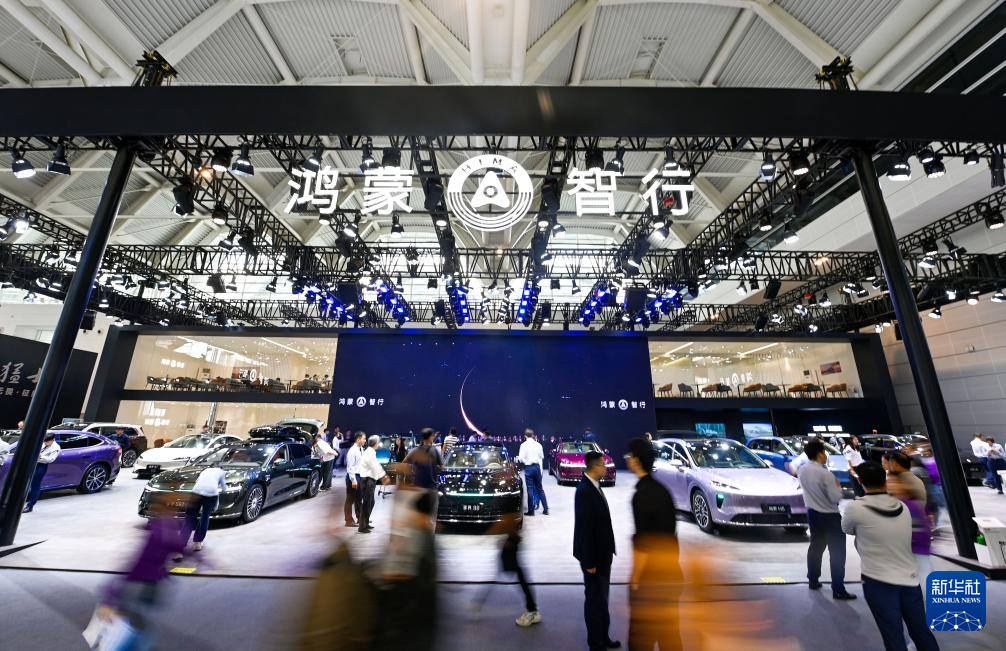 9月30日,在国家会展中心(天津),观众在鸿蒙智行展台参观。