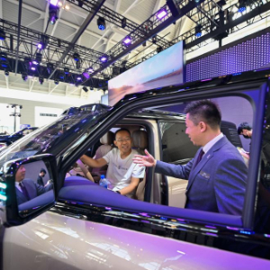 9月30日,在国家会展中心(天津),观众在小米汽车展台体验。