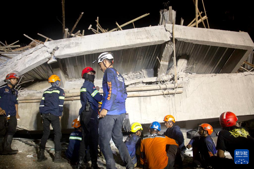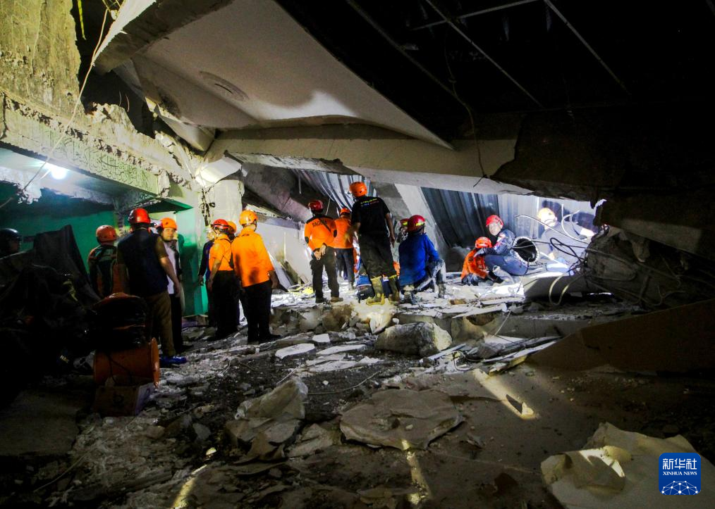 9月30日凌晨,救援人员在印度尼西亚东爪哇省诗都阿佐县建筑倒塌现场进行救援。