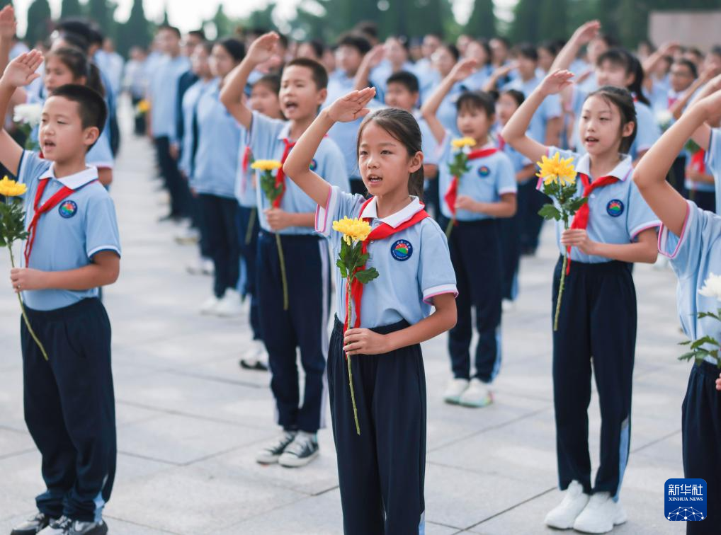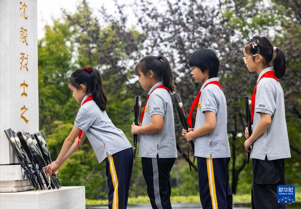 9月30日,少先队员在江苏省泰州市烈士陵园献花。