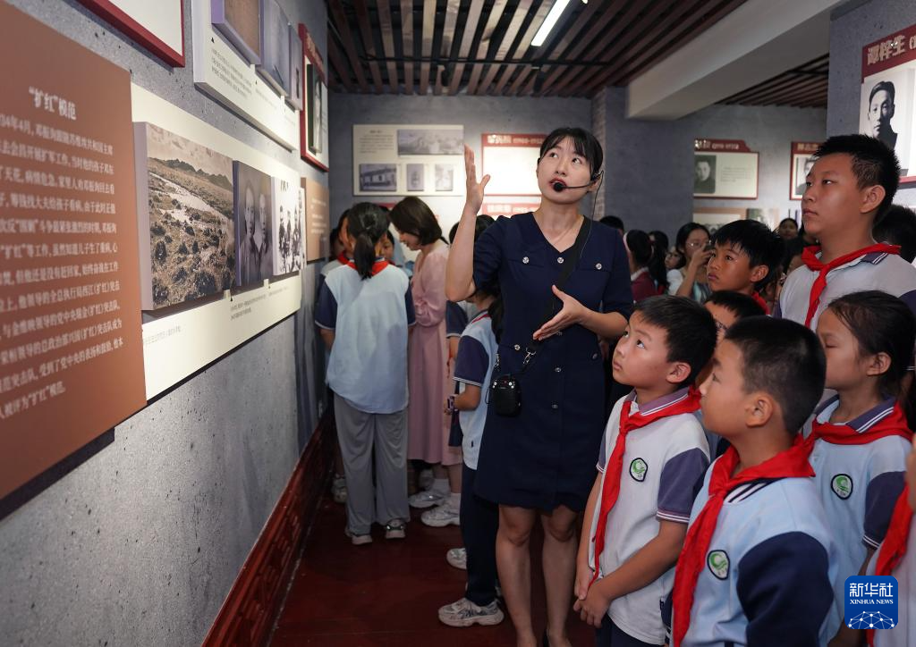 9月30日,河南省温县城内小学学生在温县烈士陵园的陈列馆聆听英烈事迹。