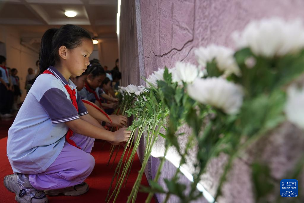 9月30日,在南昌八一起义纪念馆,学生向革命先烈敬献花束。