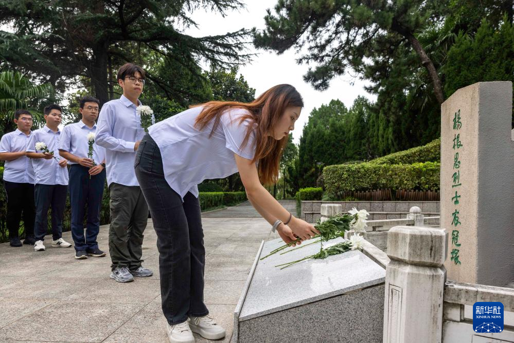 9月30日,人们在江苏省泰州市杨根思烈士陵园献花。