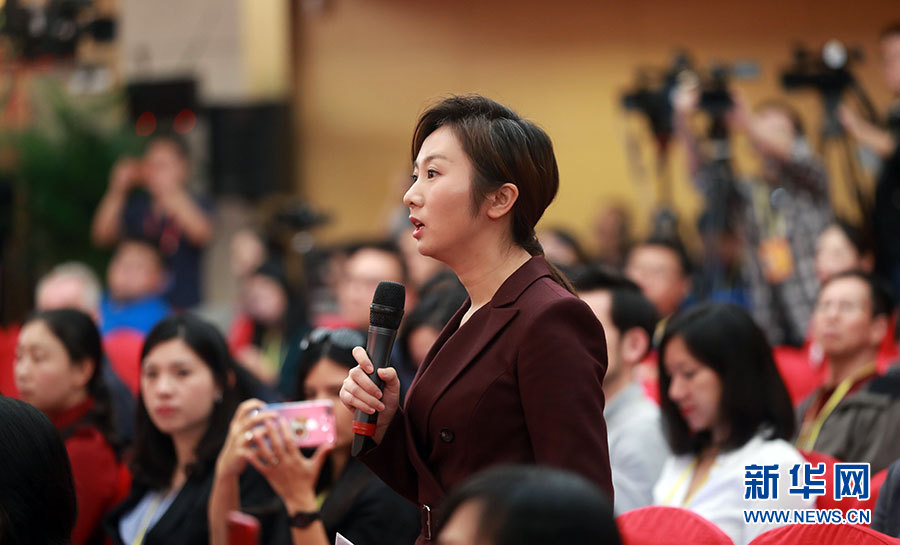 ??? 10月20日,十九大新聞中心舉辦集體采訪活動(dòng),主題為“文化發(fā)展開創(chuàng)新局面”。圖為中國國際電視臺(tái)記者提問。新華網(wǎng) 陳杰攝
