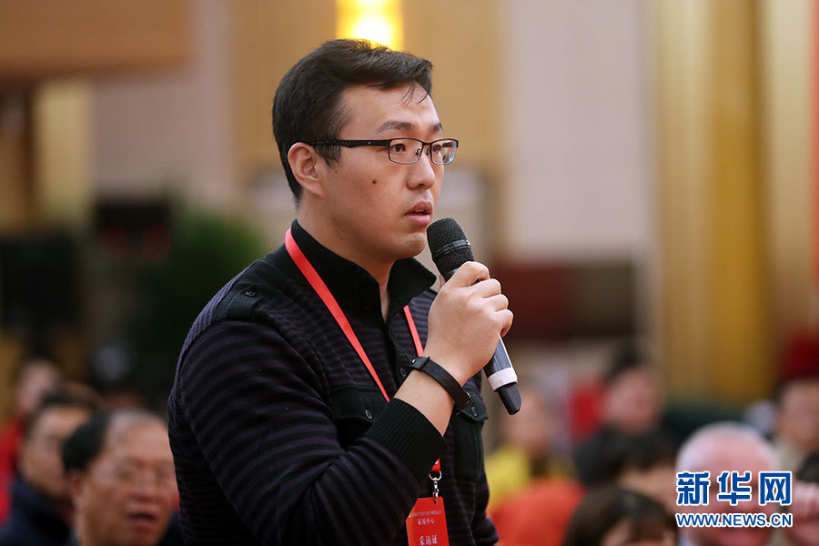 ??? 10月20日,十九大新聞中心舉辦集體采訪活動(dòng),主題為“實(shí)施創(chuàng)新驅(qū)動(dòng)發(fā)展戰(zhàn)略”。圖為中國建材報(bào)記者提問。新華網(wǎng) 郝廣鵬攝