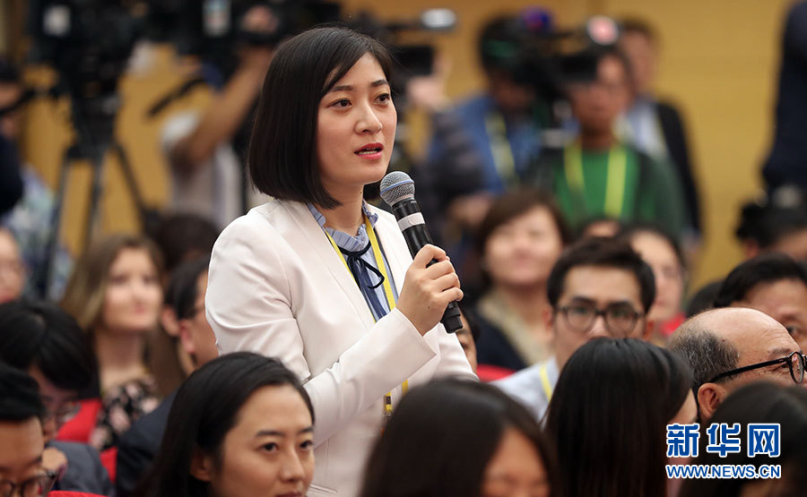 10月21日,十九大新聞中心舉辦記者招待會,邀請國家發(fā)展改革委黨組書記、主任何立峰,副主任張勇,副主任寧吉喆介紹以新發(fā)展理念為引領(lǐng),推進中國經(jīng)濟平穩(wěn)健康可持續(xù)發(fā)展有關(guān)情況,并回答記者提問。圖為中國網(wǎng)記者提問。新華網(wǎng) 郝廣鵬攝