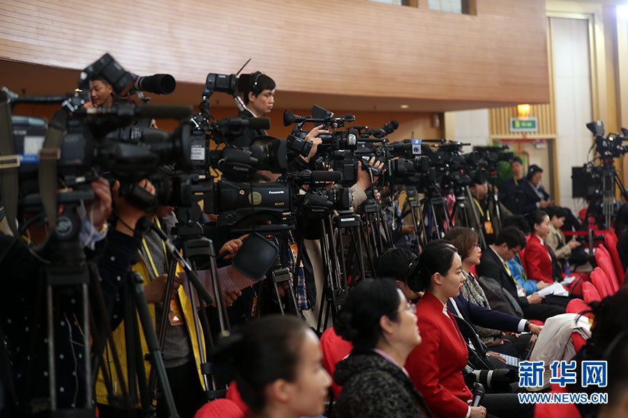 10月22日,十九大新聞中心在梅地亞中心二層新聞發(fā)布廳舉辦集體采訪活動(dòng),邀請(qǐng)教育領(lǐng)域代表談“教育綜合改革”。圖為集體采訪活動(dòng)現(xiàn)場。新華網(wǎng) 郝廣鵬攝