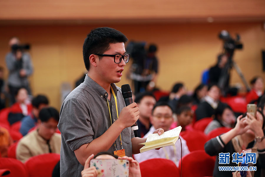 10月23日,十九大新聞中心舉辦集體采訪活動(dòng),主題為“打好生態(tài)環(huán)保攻堅(jiān)戰(zhàn)”。圖為香港商報(bào)記者提問(wèn)。新華網(wǎng) 郝廣鵬攝