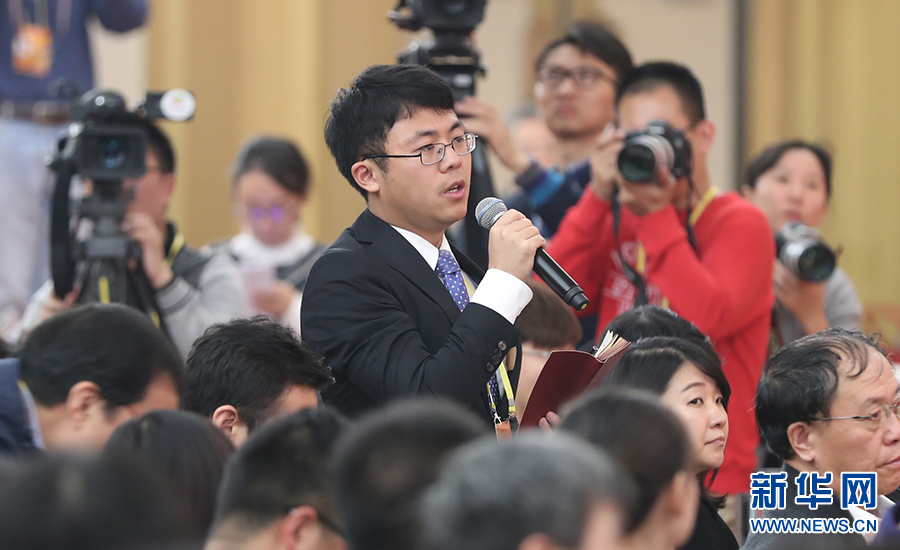 10月26日上午10:00,中國(guó)共產(chǎn)黨第十九次全國(guó)代表大會(huì)新聞發(fā)言人在梅地亞賓館二層新聞發(fā)布廳召開(kāi)專題新聞發(fā)布會(huì),請(qǐng)有關(guān)方面負(fù)責(zé)人解讀十九大報(bào)告,并回答記者關(guān)心的問(wèn)題。圖為中國(guó)日?qǐng)?bào)記者提問(wèn)。新華網(wǎng) 王成云 攝
