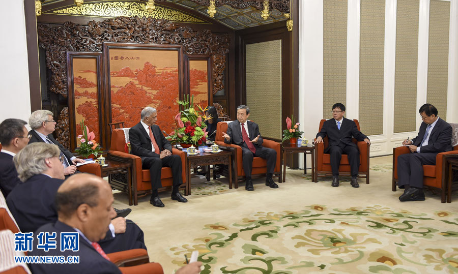 ?? 9月22日,中國(guó)國(guó)務(wù)院副總理馬凱在北京中南海紫光閣會(huì)見巴基斯坦前總理肖卡特·阿齊茲等參加中投公司國(guó)際咨詢委員會(huì)會(huì)議的委員。 新華社記者謝環(huán)馳 攝