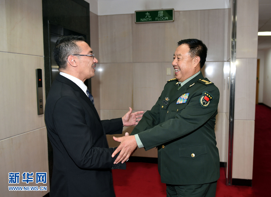 ??? 10月15日,中共中央軍委副主席范長(zhǎng)龍?jiān)诒本┌艘淮髽菚?huì)見(jiàn)來(lái)華出席中國(guó)-東盟國(guó)防部長(zhǎng)非正式會(huì)晤及香山論壇的馬來(lái)西亞國(guó)防部長(zhǎng)希沙姆丁。新華社記者張領(lǐng)攝