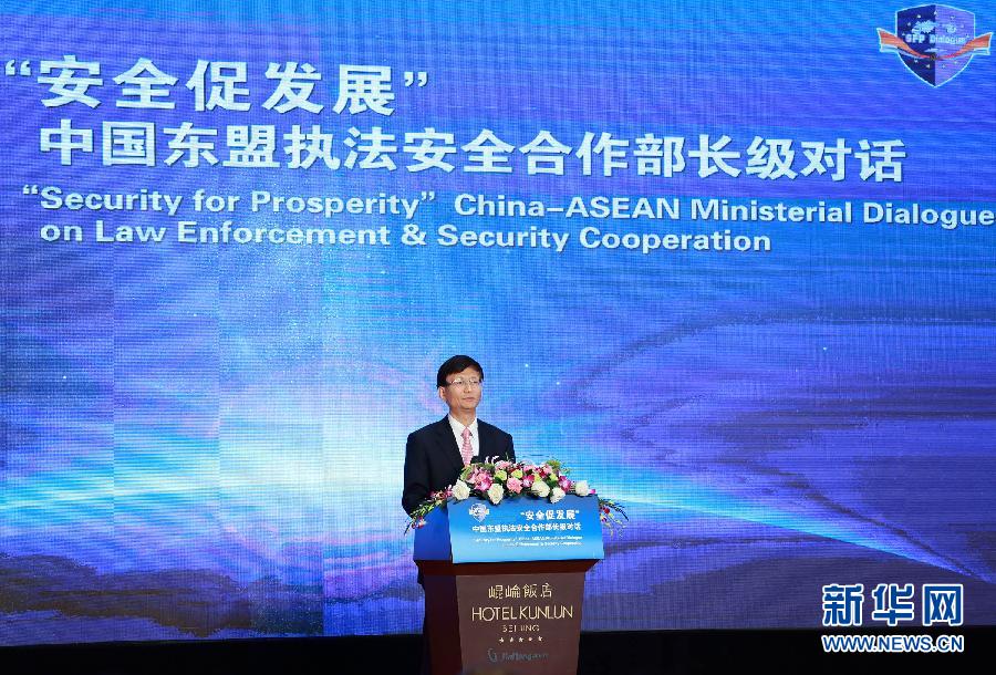 ??? 10月23日,“安全促發(fā)展”中國東盟執(zhí)法安全合作部長級對話在北京舉行。這是中共中央政治局委員、中央政法委書記孟建柱致開幕辭。新華社記者 丁海濤 攝
