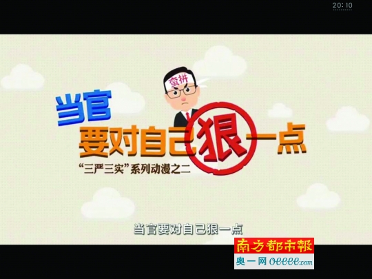這次朝陽(yáng)工作室推出的為《三嚴(yán)三實(shí)系列動(dòng)漫視頻》,有網(wǎng)友開(kāi)玩笑,“朝陽(yáng)群眾又立新功”,也有眼尖的網(wǎng)友分析,朝陽(yáng)工作室推出的兩組視頻都是當(dāng)年從黨中央到基層都非常重視的大事,且視頻內(nèi)容如此大尺度,不排除有官方背景。