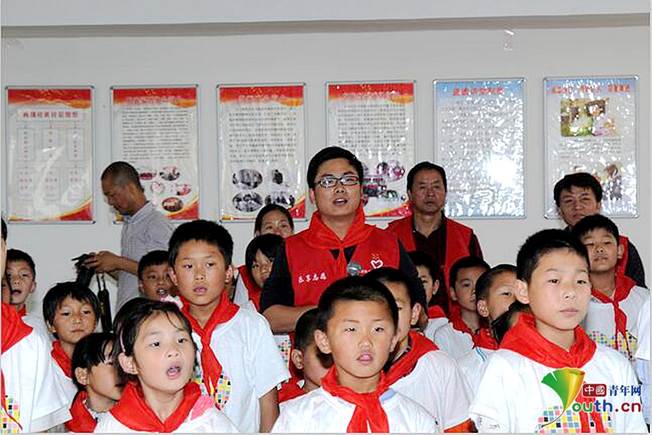 左臣作為代表參與當(dāng)?shù)匦W(xué)的公益活動(dòng)。本人供圖