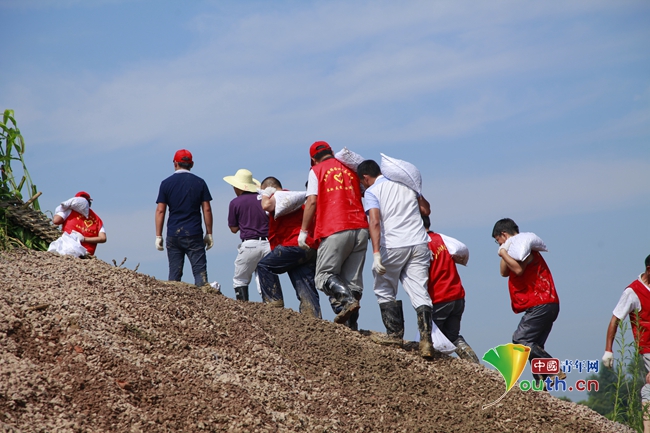 在安徽肥西縣派河支流中派橋段大堤上,有這樣一群不到20歲的年輕人:他們或剛走出高考考場,或休暑假剛離開高校。他們從來沒有干過重活的肩膀一次次扛起沙袋,不知繭子為何物的雙手一次次擦傷磕破。他們都是“97后”。在汗水雨水洪水中,他們找到了“長大的感覺”。(記者 周學(xué)磊 見習(xí)記者 魏林甫)