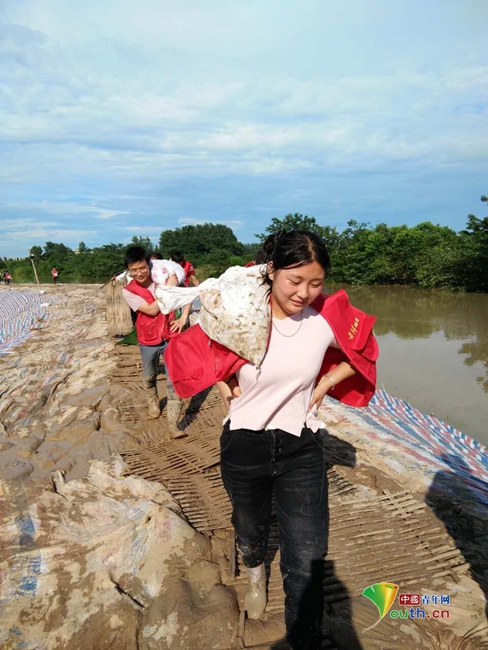 一個沙袋30斤,要背800米才能到堤壩,一天下來骨頭都累的散了架。想著護住堤壩才能護住鄉(xiāng)親們的生命財產(chǎn),她告訴記者感到了青春的價值。安徽團省委供圖
