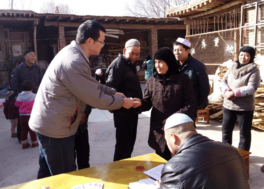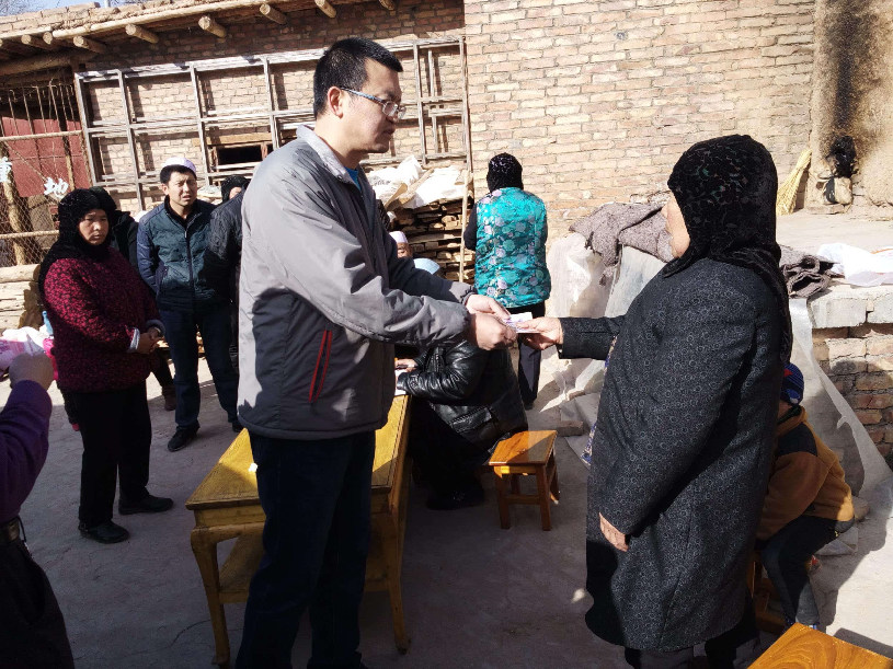 包毅為貧困戶發(fā)放慰問(wèn)金,宣傳精準(zhǔn)扶貧政策
