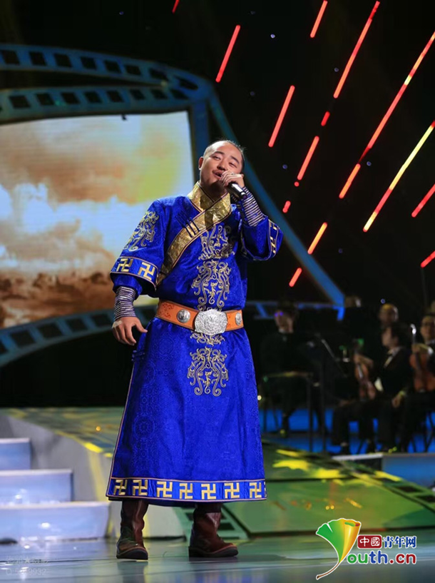 呼和牧人在《紀(jì)念中國(guó)共產(chǎn)黨成立95周年電影音樂會(huì)》演唱民歌。本人供圖
