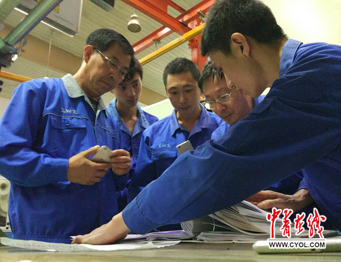 李書乾等人正在仔細(xì)翻看設(shè)備圖紙