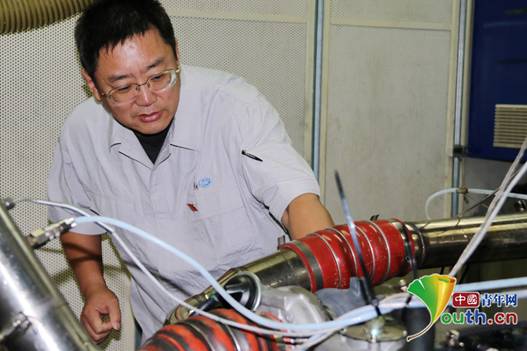 鹿新弟在檢查機(jī)器設(shè)備。中國青年網(wǎng)記者張群 攝