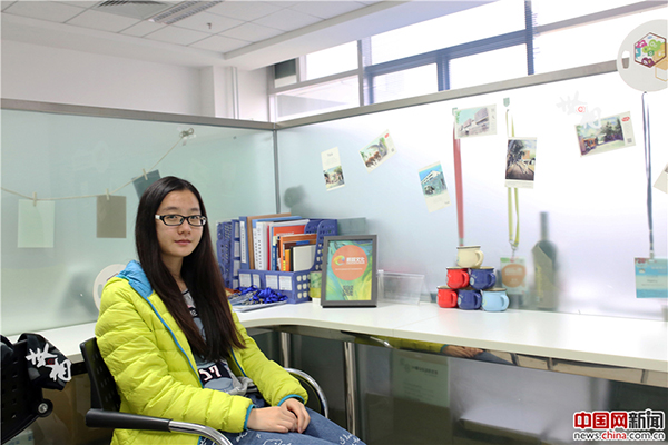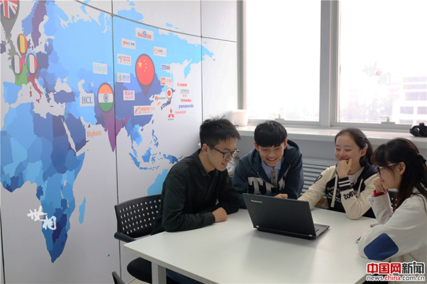 蜂巢創(chuàng)意空間的創(chuàng)業(yè)團(tuán)隊(duì)在討論方案,墻面上貼滿了全世界有名的企業(yè)。